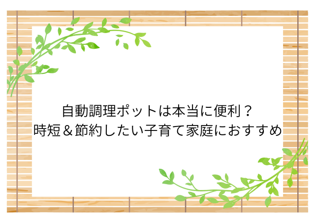 自動調理ポットは本当に便利?時短&節約したい子育て家庭におすすめ